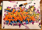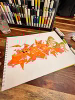 Traditional black book page done with markers on paper. Measures 14X11". Comes with assorted stickers.