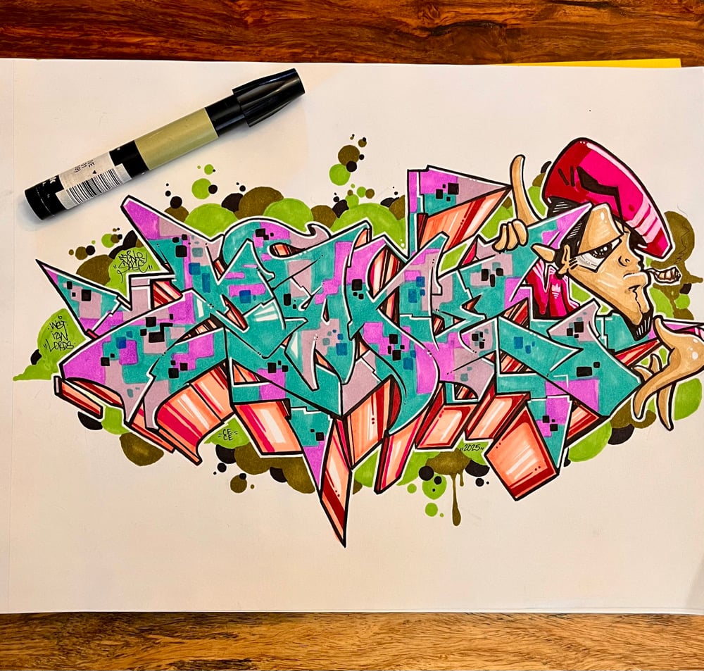 14x11 blackbook page. Markers on paper. comes with assorted stickers.