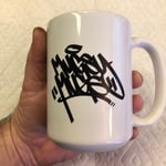 15 oz ceramic coffee mug with logo and B-girl design on each side.