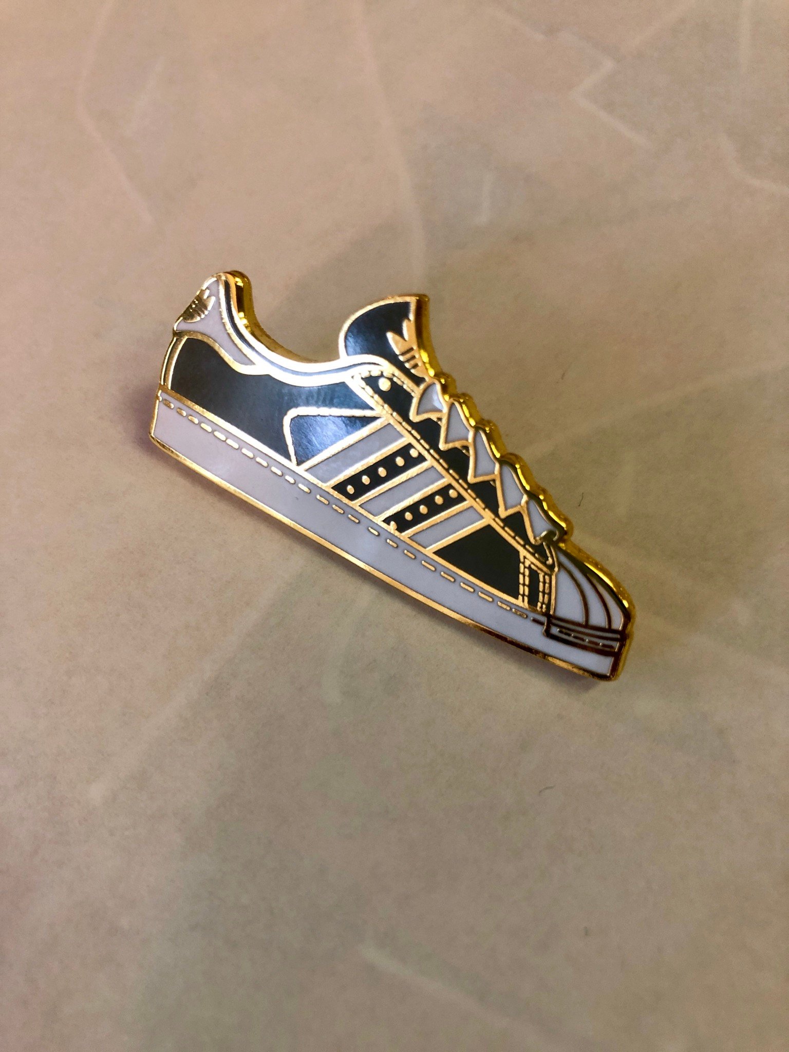1.75 inch hard enamel pin. Double posted with hand style on the back. Comes with velvet pouch and random stickers.